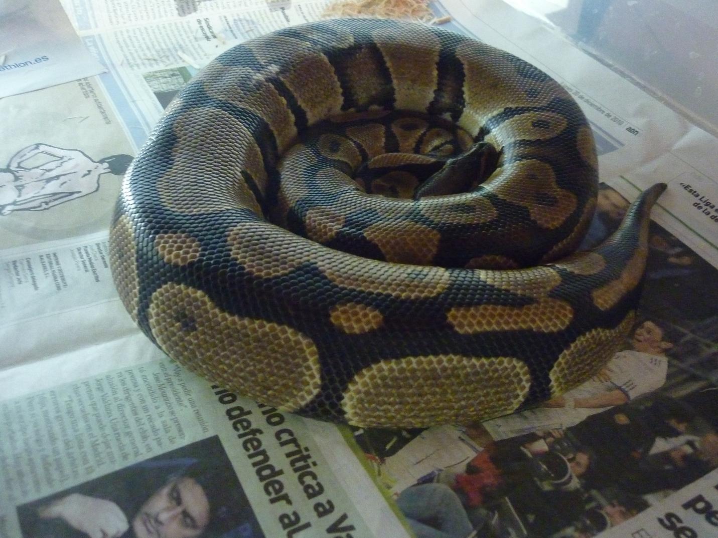 Esta hembra copulo con un macho pastel muy bonito, la hembra pesaba antes del inicio del ciclo 1630g, y dede noviembre solo ha aceptado comida una vez, una presa de 150g.