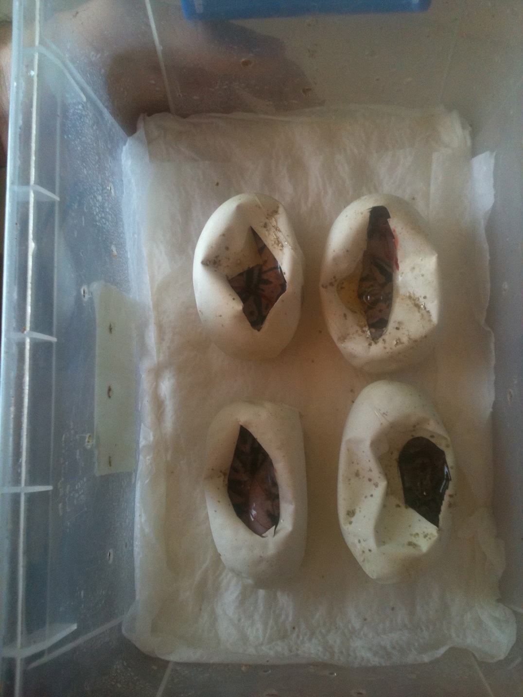 Vigila esos huevos, yo apostaría por una humedad excesiva, pero tambien podría ser por falta de humedad, mira que no se arrugue más, o que no se empiezen a arrugar los otros huevos. Si se siguen arrugando algo va mal.