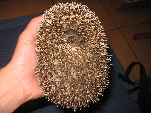 La otra noxe llegue a casa de madrugada y mientras aparcaba el coche vi una sombra caminar por la calle debajo de una farola. Sali del coche para verla bien y me di cuenta de q era un erizo (erizo moruno). Pues nada lo cogi por un ratito, le sake unas fotos y lo vovli a soltar done mismo lo encontre.La verdad q menuda sorpresa :) hacia tiempo q no los veia por la zona y eso q antes habia muchisimos...la verdad q es una pena q por culpa de los pesticidas y demas venenos esten desapareciendo estos animales tan bonitos :mad: Aki les dejo unas fotos, la verdad q el pobre estab medio asustado