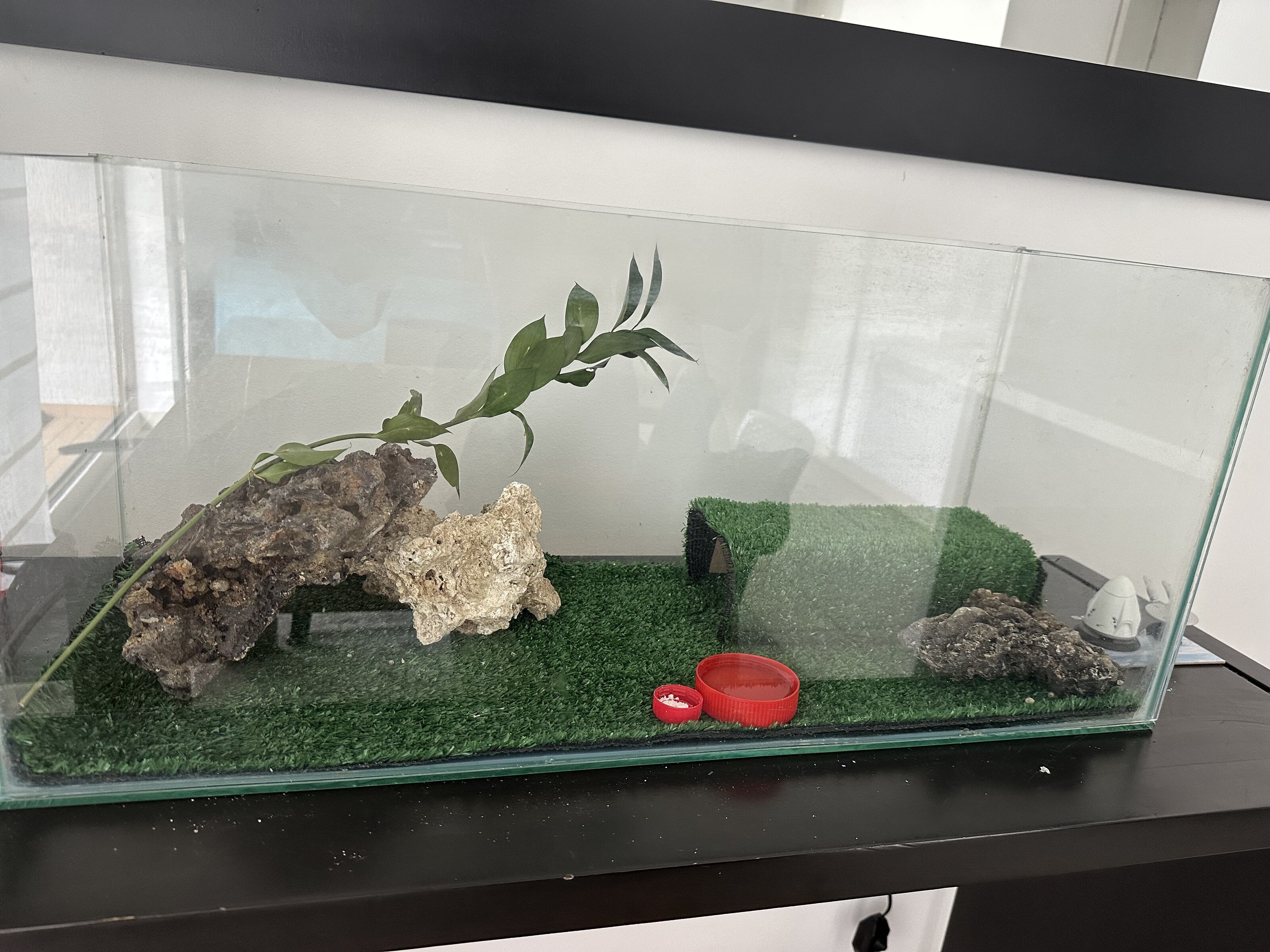 Desde que llegó ya le tenía su terrario preparado , le tengo placa térmica con 31° lo cual creo que en su vida no tuvo