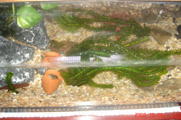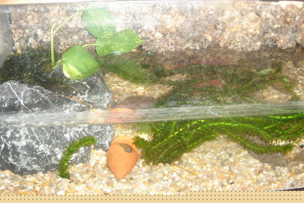 Hola por fin tras ir cogiendo ideas de otros usuarios he transformado mi acuaterrario, para mi esta muy curioso, le he puesto una neon de 6 w para las plantas, musgo de java en la isla que les he puesto y el fondo de grava, al principio estaba asustado con la grava x si se la comian mis tritones pero ya he comprobado que no hay peligro, espero que os guste un saludo