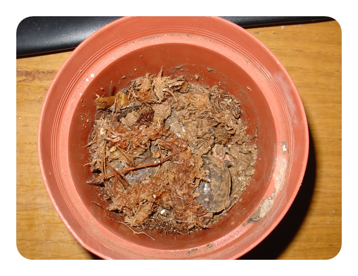 Las tortugas deben expandirse tranquilamente, por lo que las translado a macetas con tierra húmeda un par de días antes de pasar al terrario.