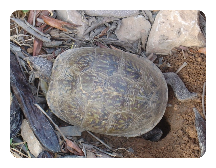 Es un comportamiento muy típico, verlas deambular y, de repente, pararse, estirar el cuello y casi introducir el hocico en tierra, mientras alargan las patas delanteras separando el sustrato ligeramente. Si el sitio les gusta, (habitualmente cerca de una piedra o planta, o bien una valla en caso de tenerlas en un cercado), la tortuga se posiciona sobre esa zona que ha despejado con sus patas delanteras, (pero esta vez sobre las traseras), y comienza a escarbar, realizando un movimiento en el que alterna ambas patas traseras, recogiendo con las uñas montoncitos de tierra que aparta detrás.