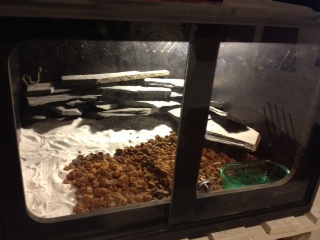 Hola Alejandro, no te recomiendo para nada que tengas el terrario de esa manera, las piedras asi colocadas son un peligro importante para los animales, a no ser que esten pegadas y ademas en un terrario tan grande te va ser mucho mas dificil controlar la alimentacion y la limpieza, los terrarios para este tipo de animales tienen que ser SENCILLOS yo con la edad de tus ejemplares te vuelvo a recomendar que los mantengas en taper para cada uno con papel de cocina unas corchas y un cacharrin para el agua y estos dentro del terrario y por el momento van que chutan azme caso que te ahorraras disgustos un saludo