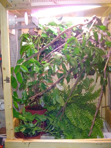Hola, el terrario por lo que se puede ver esta chulo, podrias dar alguna infromacion como las medidas, sitemas de iluminacion y calefaccion, etc.. como te comentan es mejor que pongas la lampara de ceramica en vertical y recuerda que siempre la tienes que conectar a un termostato para que la temperatura no se dispare, por lo demas parece que esta todo bien SALUDOS