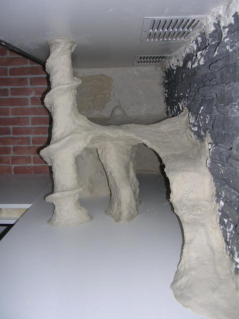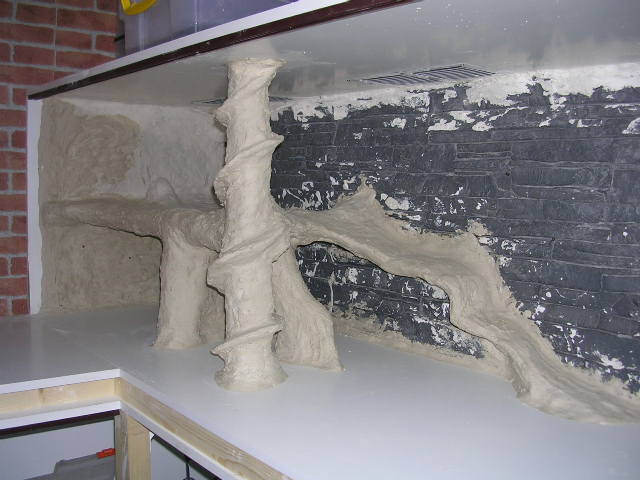 si es una especie de fibra de carbono de forma de piedra corte la medida del terrario y la junte con escallola , la verdad que puesto queda de puta madre