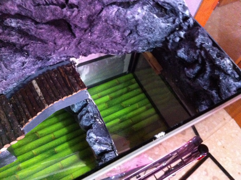 Te ha quedado muy bonito pero.......y la ventilacion:confused: Por lo que veo en las fotos debe ser por la tapa superior y no entera,ya que tienes la luz. No sera demasiado insuficiente para el erizo? Un saludo.