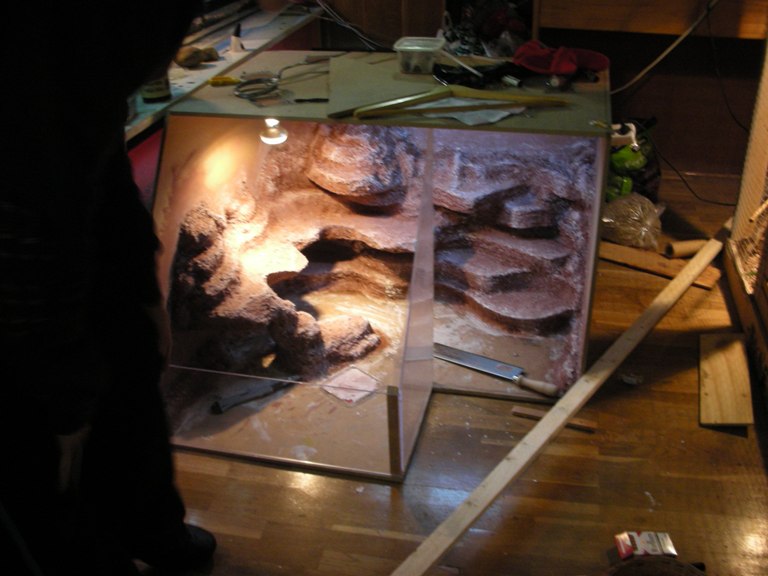 no he usado corcho, son planchas de poliexpan y poliuretano para los diferentes niveles y luego espuma de poliuretano para que no quedara todo lineas rectas
