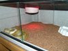 solo tiene esa fuente de calor y la calefaccion de mi casa... pero bueno, muchas veces no esta la calefaccion y se las apaña con la bombilla, con una año y dos meses mide 1'80m aprox y es un macho... no esta nada mal...