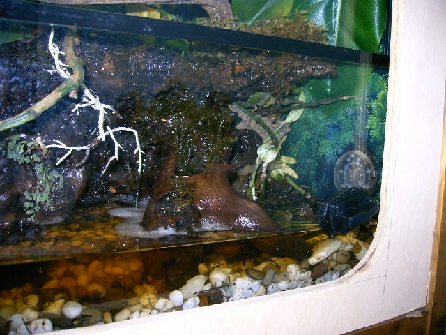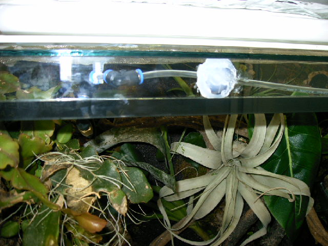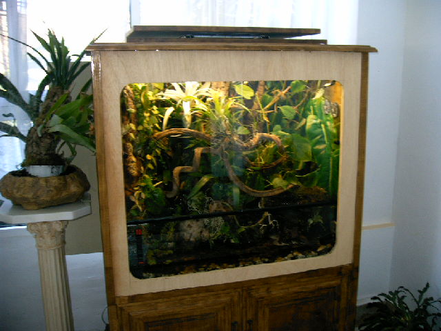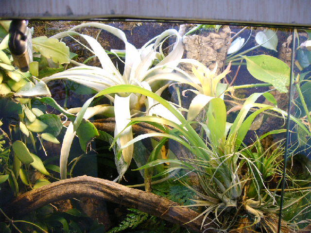 Bueno pues ya esta montado y listo para inciar las luces el pulverizado y el filtro biologico para establecer el ciclo del nitrogeno en las plantas. Aun no se si la Zona acuatica sera muy profunda o no puesto que tengo que ir llenandolo Poco a poco y ver cuanta agua va a ser requerida para darle la humedad a la tierra y poder filtrar este agua sin tener que apurarme por que el filtro tome aire o no.. A mi me esta encantando Y como muchas de las Plantas de Hojas grandes son aun muy pequeñas he puesto unas hojas de tela grande para que las ranitas se sientan mas agusto y Tengan sitios donde esconderse. Aun No esta plantado en su totalidad las plantas que estan son tallos de las que ya tengo en casa y son Cactus Arbolicolas, Hoya Bella, Ficus Pumilla, De Bromelias 2 tipos de Bilbergias, Un tipo de Achmea y otro de Neoreglia. 4 tipos de tilandsia, y dos cryptanthus, un tipo de philodendron y ahora vendran las orquideas cuando visite lo viveros de por aqui. quiero un par de Phalanopsis, y quizas una Vanda y algunas de las que son totalmente epifiticas con las raices al aire.. :rolleyes: :rolleyes: :rolleyes: