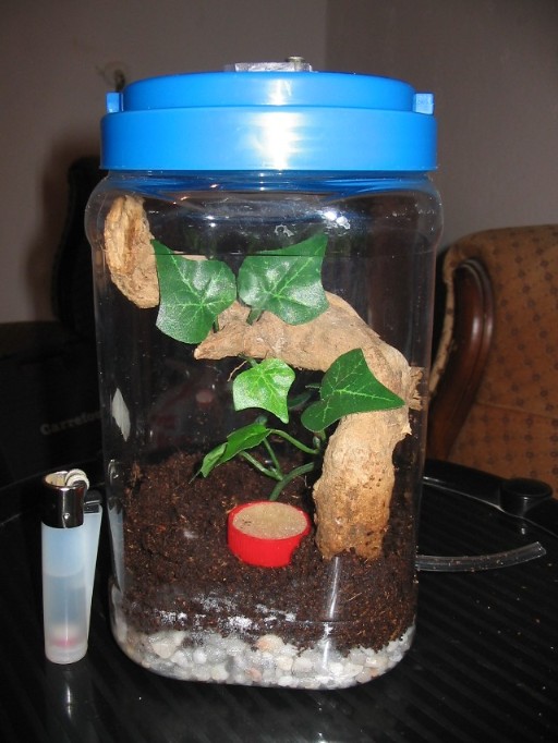 GeCKeRo89 : jajaja, no estaba muy segoro para q eran las piedras hasta q tu me las aclarado, la verdad q eso es el problema de las tapas q al abrirlas o cerrarlas la tarantula se asusta, te dejo una foto de otro apaño q le hize a los botes de las irminias para evitar tener q abrirles la tapa q es de rosca y vaya si tiene rosca,jejeje.