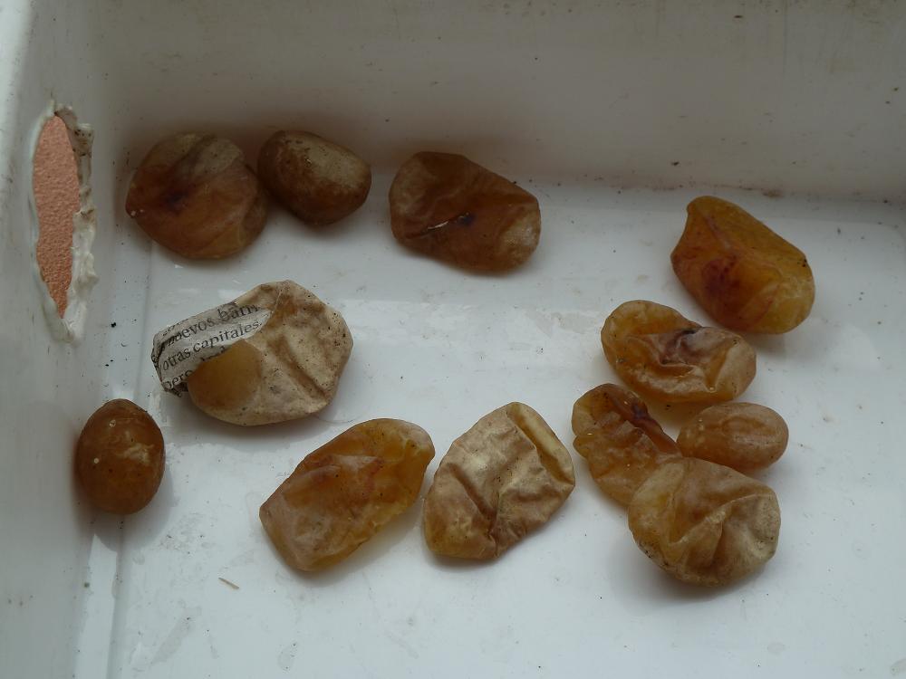 Llegue ayer después de 4 días fuera de casa, y me encuentro que la hembra ha puesto los huevos sobre el periódico y encima de la manta térmica :mad:, en vez de ponerlos en el sitio de puesta que le habia preparado, sospechando que estaba a punto de caramelo. Resultado 14 huevos inservibles. Ya van dos año seguido que pierdo la puesta, tengo el gafe con esta especie.
