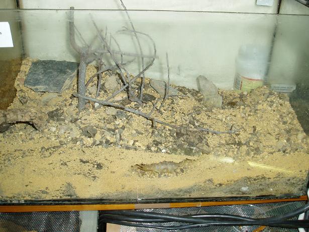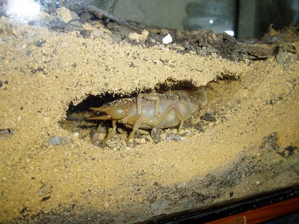 hay esta el truquele de muchos escorpiones deserticos, arena roja mezclada con algo de arcilla (2 partes de arena roja y una de arcilla) lo empapas totalmente lo dejas secar y se queda una masa comparcta en la que se pueden hacer tuneles si peligro al derrumbe. ademas si se derrumba no hay mas de 3 cm por encima de ella, sale sin problemas