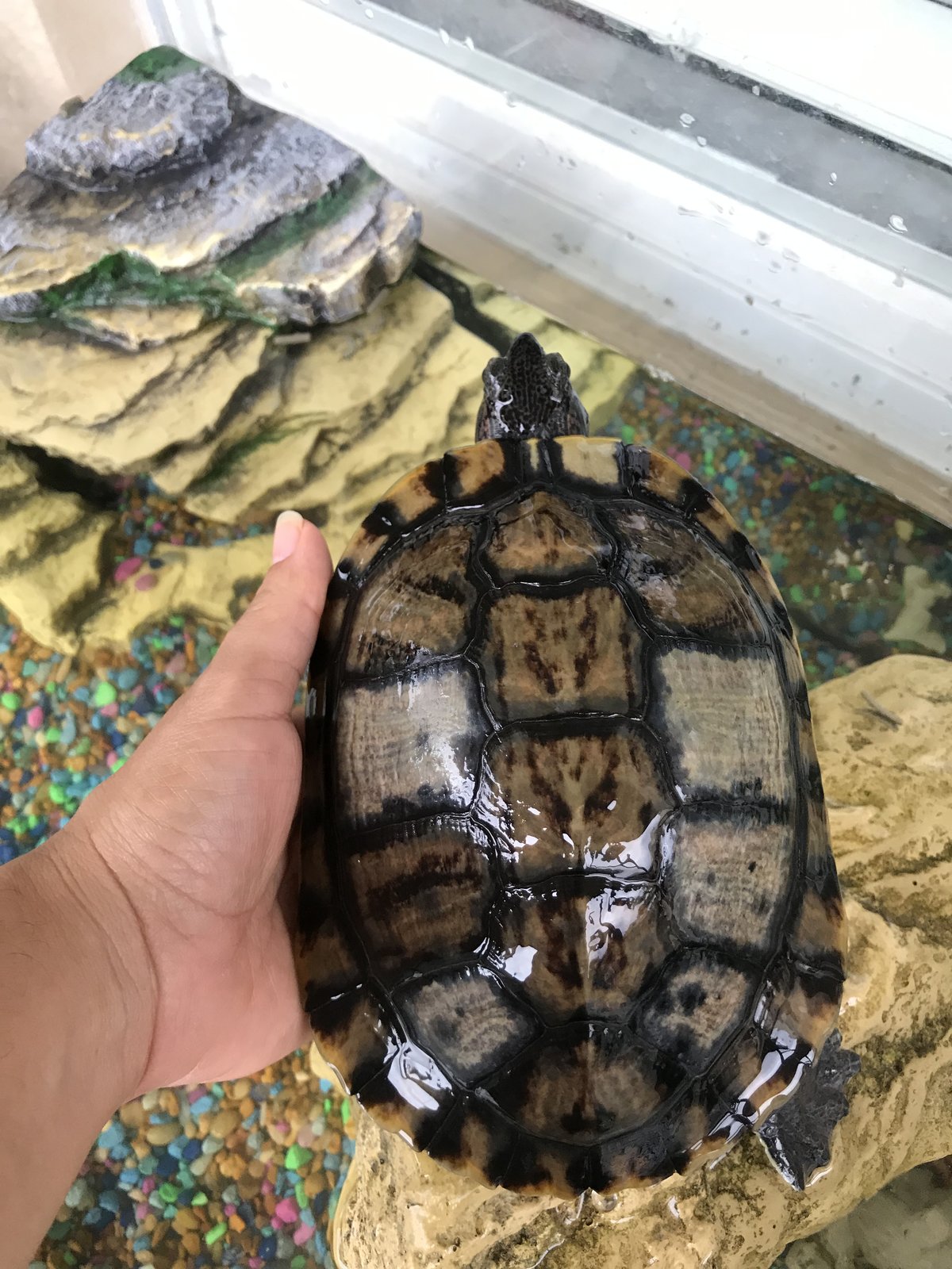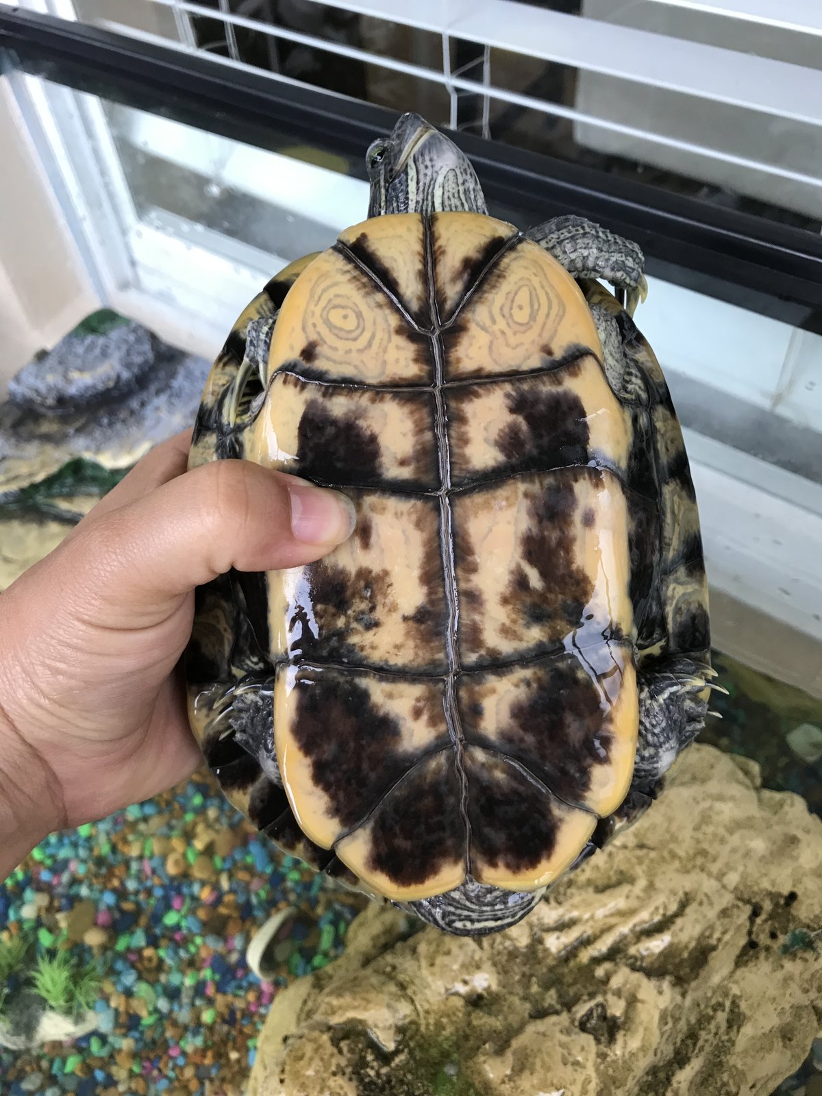 Hola, mi tortuga de 6 años , desde hace unos días la moto como más pálida y en el caparazón empezó a perder color y le salieron unas manchas grandes como blancas , está enferma ? , vive con dos tortugas más y afuera en un acuario , la alimentó con sticks para tortugas y algunas gambas que vienen secas para tortugas aveces , es lo que han comido siempre ...les pongo fotos