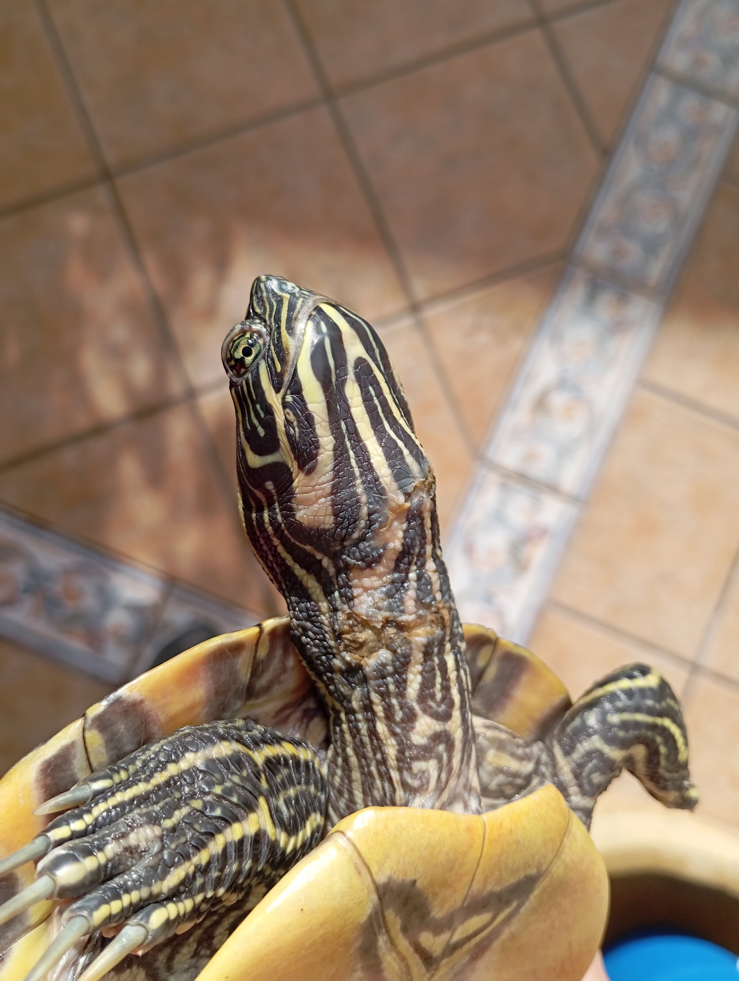 Hola , mi tortuga tiene en el cuello una especie de costra o mancha y no sé si se le quitaran con el tiempo o si tengo que comprarle algo o llevarla a la clinica veterinaria