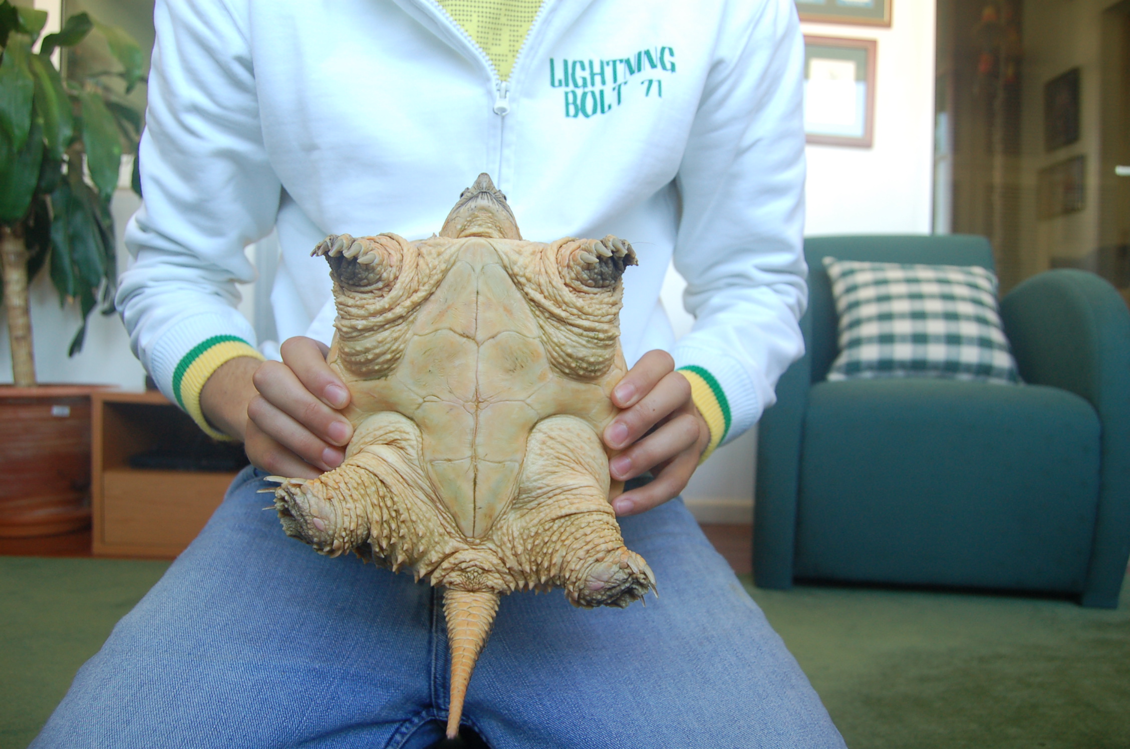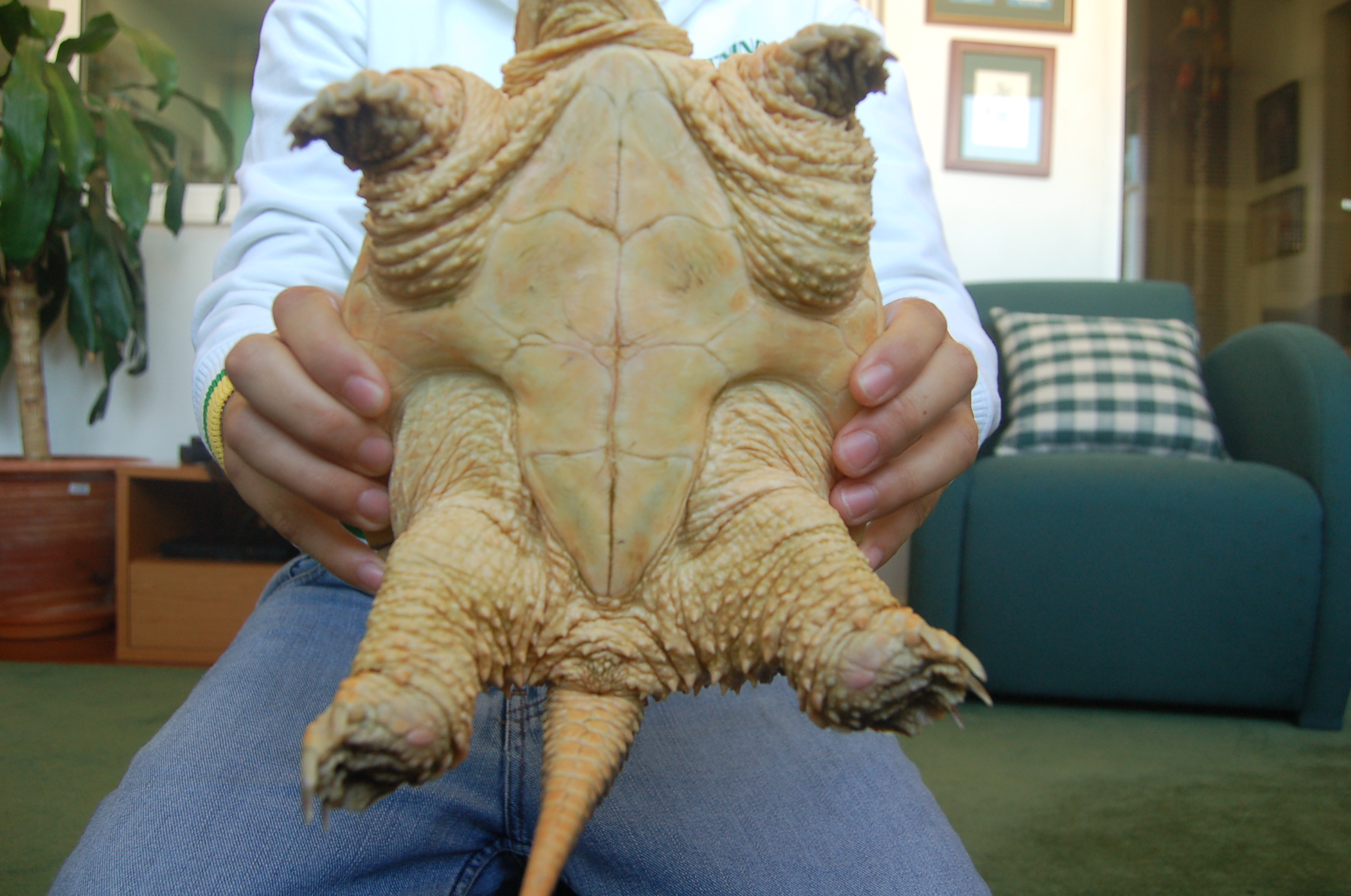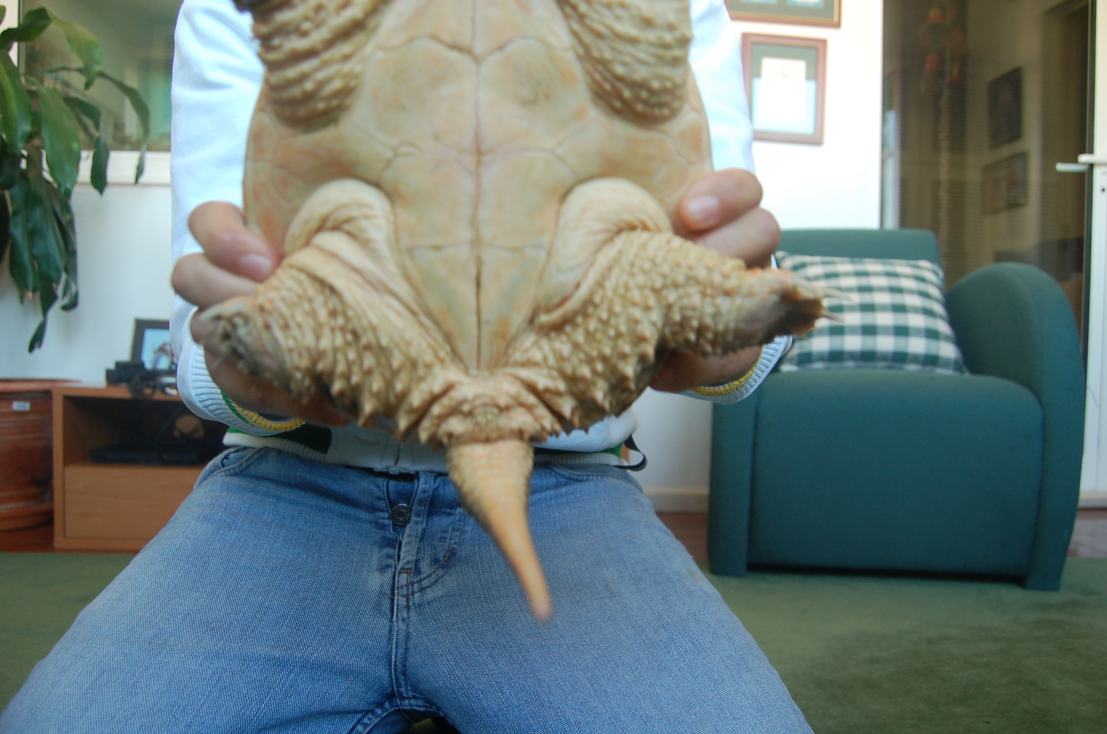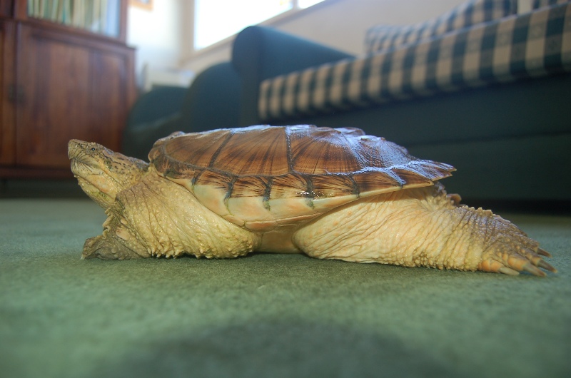 Esta és mi tortuga mordedora comun con acerca de tres anos de idade.