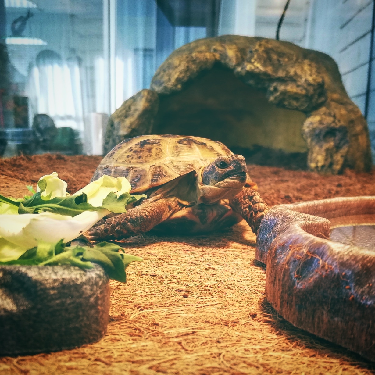 También preguntaros si con la lámpara de cerámica justo encima sería posible calentar la cueva de la segunda foto cuando ella duerma dentro, ya que con esta cueva le baja bastante la temperatura por la noche y esto produce que no esté activa durante el día ni quiera comer. Tras consultar con el veterinario sobre este comportamiento, me recomendó que le quitase la cueva y la utilice sólo en verano. Esto me confunde porque veo fotos de otras tortugas que si tienen su refugio en sus terrarios...