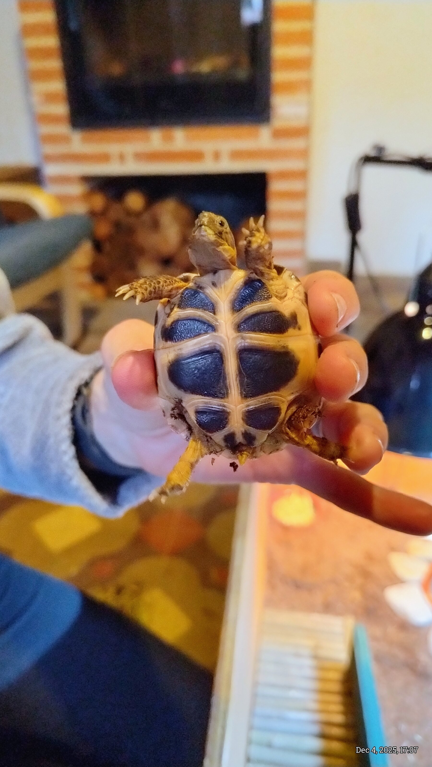 Le doy calcio para untar en la comida tres veces por semana. Para la luz UVB, le doy Arcadia T5 de 24 W a unos 40 cm del caparazón. Calor halógeno de 75 W. Come diente de león, barba de gallo, oreja de gato, hojas de malva, escarola, endivia, achicoria, tuna (pelada y picada) y canónigos. La humedad está entre el 40 % y el 50 %. Y alrededor del 80 % por la noche en su zona fresca donde duerme. ¿Hay algo más que deba hacer? Aqui adjunto unas fotos.