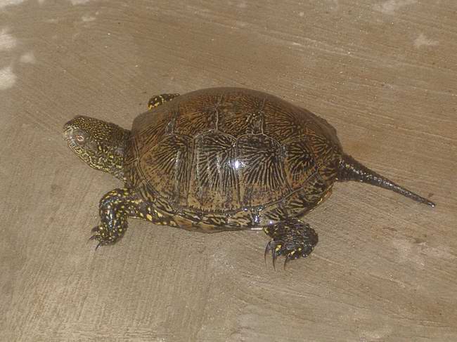 Una foto de una Mauremys leprosa muy clarita, quiza hipomelanistica