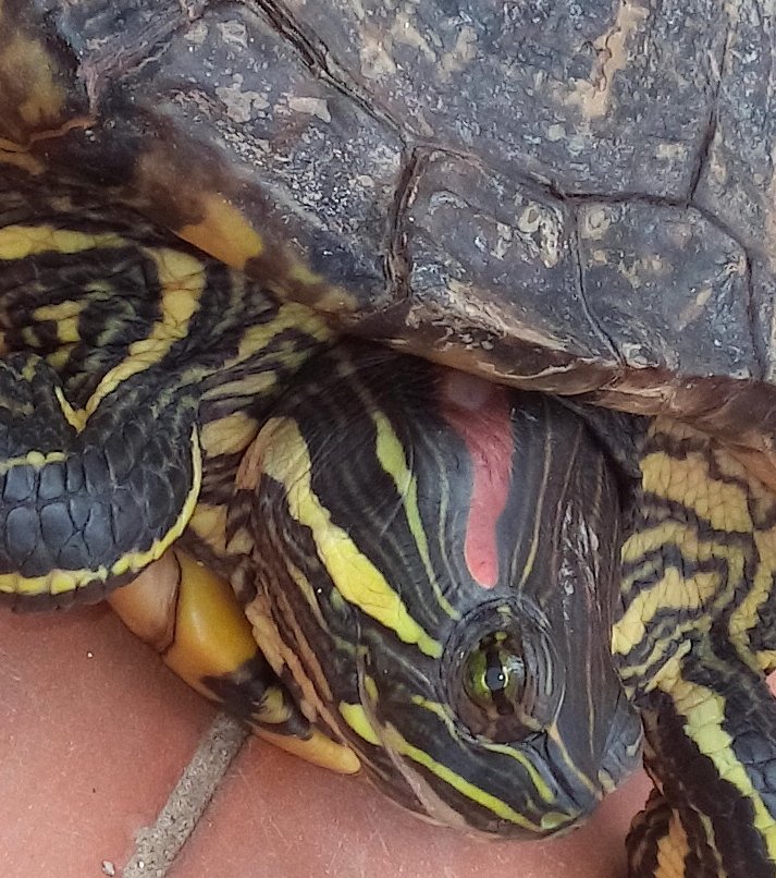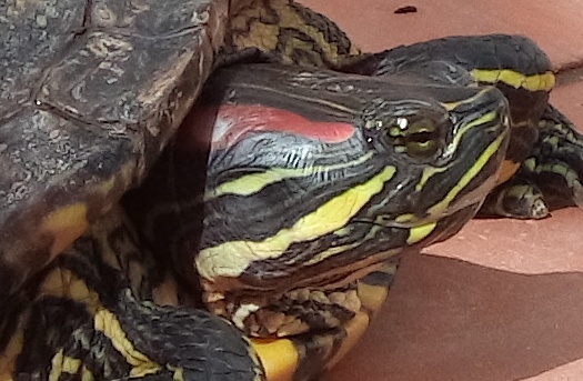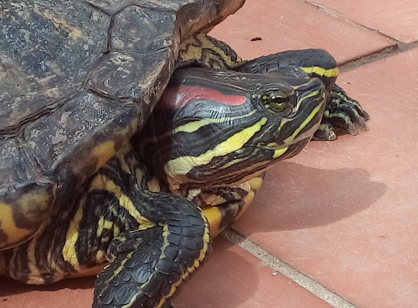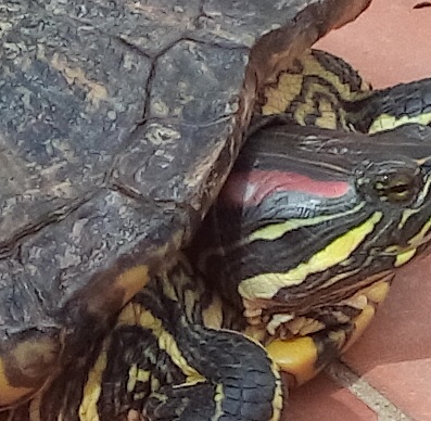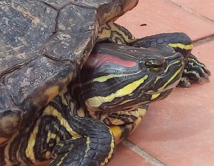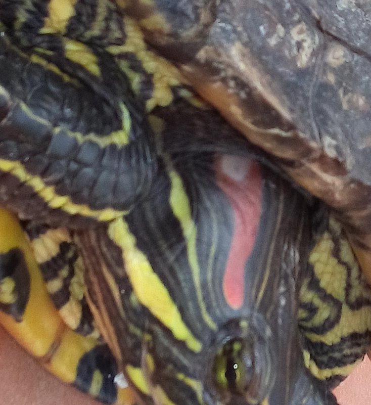 Hace unos días en una de las veces que saco mi tortuga al sol, sacó la cabeza y me di cuenta de que tiene una pequeña señal blanca en la zona donde habitualmente esta especie (Scripta elegans) tienen las manchas rojas (Que si no calculo mal, es la zona de los oídos, pero puedo estar errado). Como podéis imaginar, no soy un experto y mis búsquedas vía Google (ya se que no es lo mejor, pero por ahora...) me han llevado a pensar que puede ser un roce del caparazón, resto de herida malcurada o absceso aural, y recurro a vosotros, mucho más experimentados que yo, en busca de orientación previa para sea lo que sea ir haciendo lo que pueda para que no empeore, como digo, antes de la visita veterinaria.