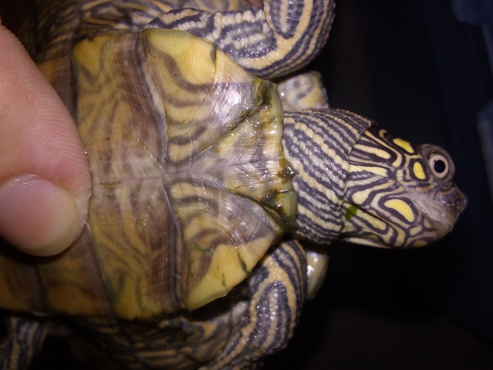 Al grano, voy a adoptar una tortuga Graptemys ouachitensis (la especie no la tengo muy clara, me pereció ver una marca debajo del globo ocular) y quería saber desde la experiencia cual sería el medio de transporte ideal para traerla a casa. Yo tengo pensado en una pequeña caja de zapatos acolchada con hojas de plantas comestibles y con agujeros en la parte superior: ¿que os parece?