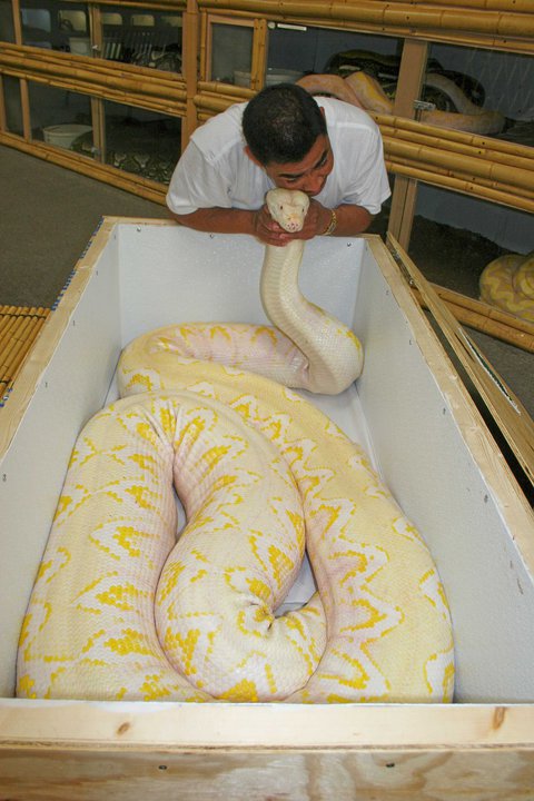 esta gente han hecho , lo que saben hacer , desguarnecer a un animal de sus caracteristicas guapas para sacar rendimiento y mejorar su economia como negocio sin mas , al margen de que hay que estar un poco colgao para pretender meter la piton mas grande del mundo en un cajon .....yo creo que es obvio.