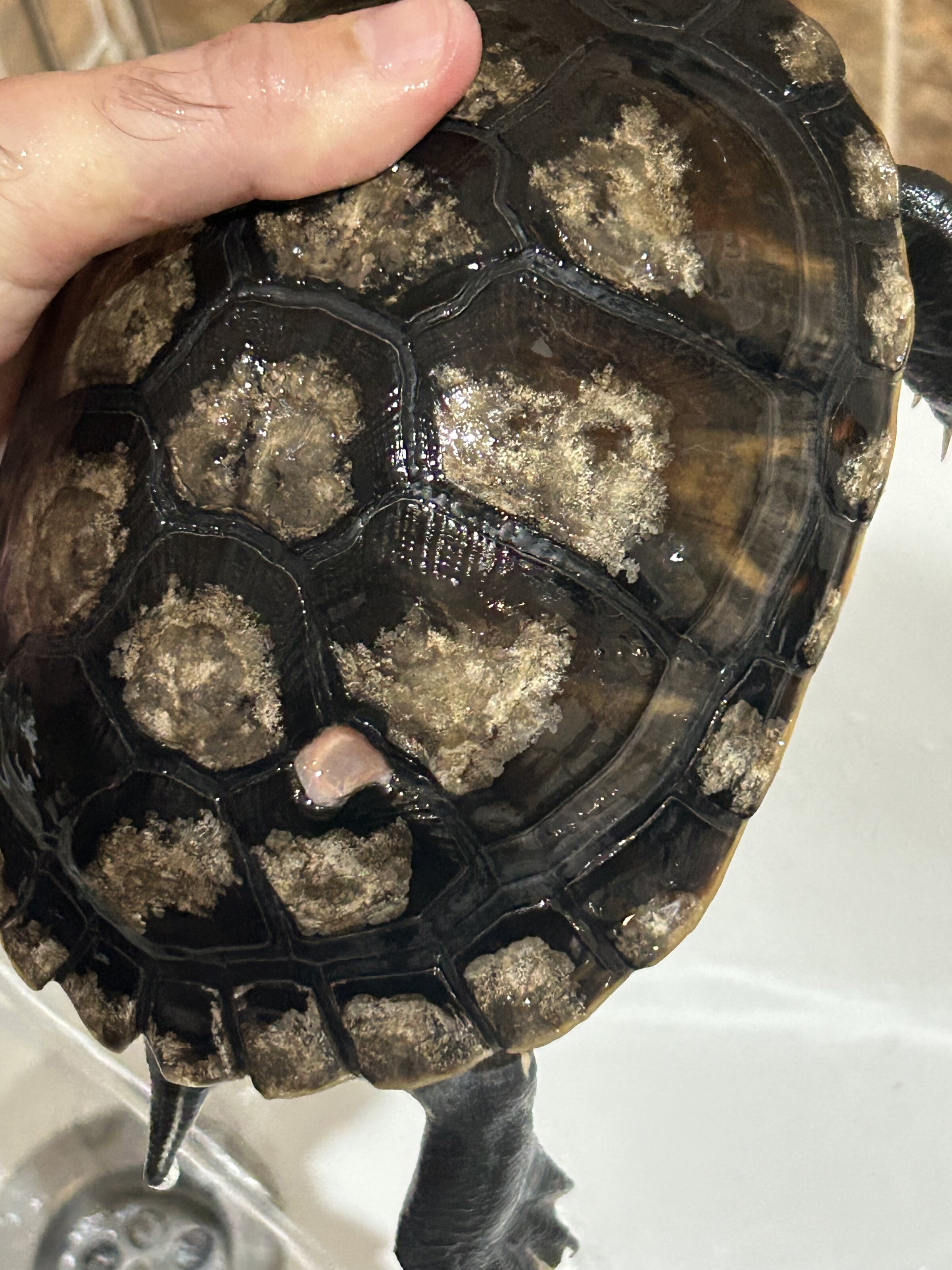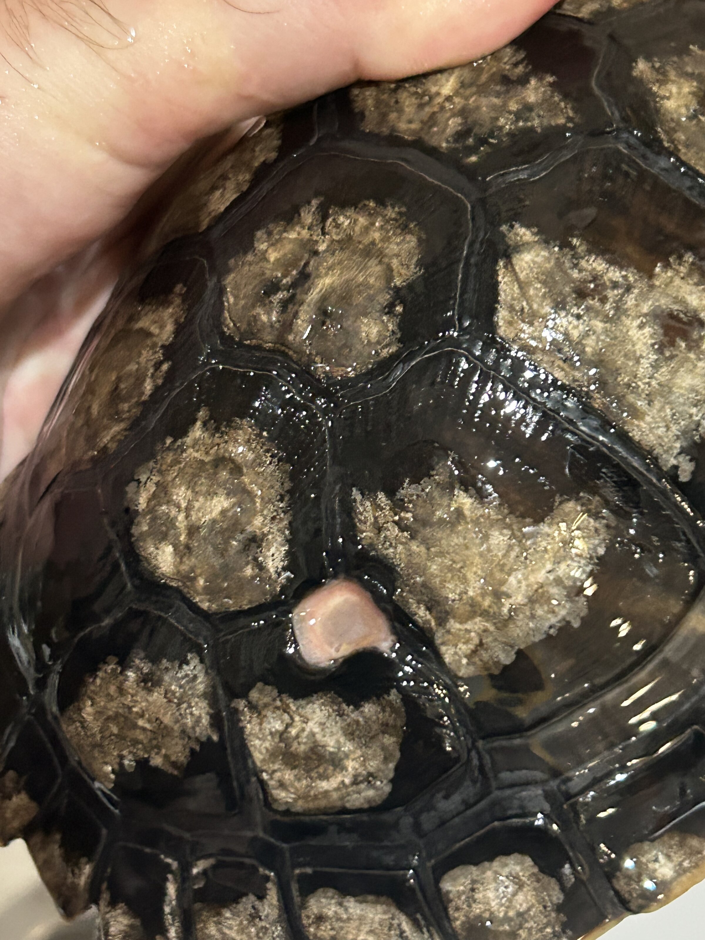 Hace bastantes meses a una de mis tortugas le salieron un par de “agujeros” entre las placas de su caparazón. Acudí a mi veterinaria de confianza y la estuvo tratando, ya que en mi zona no hay especialistas en exóticos (solo uno con el que tuve malas experiencias).