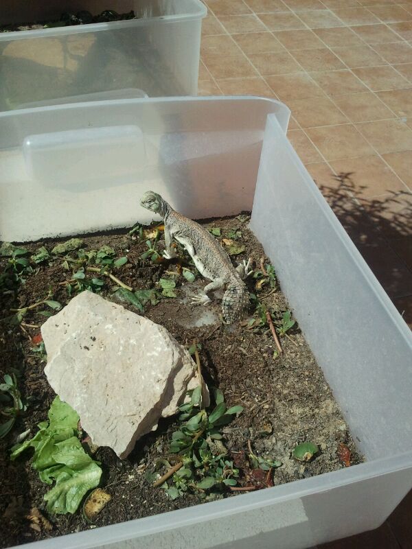 Tengo varios uromastyx y hace tres semanas me compre una pareja de thomasis,todo iva perfecto hasta hace 3 o 4 dias la hembra me ha dejado de comer y esta todo el dia escondida y con los ojos cerrados y me ha perdido bastantepeso.hoy he empezado a darle un medicamento por si tiene algun parasito intestinal.otra causa puede ser que se hubiera tragado algo y tubiera alguna obstruccion por eso tambien he empezado a darle baños de agua tibia aproximadamente media hora al dia.y por ultimo tambien puede ser q este embarazada y tenga alguna retencion de huevos por que la veo un poco inflada.el problema es que donde yo vivo (Almansa Albacete)no hay ningun veterinario especialista en reptiles.si alguien puede ayudarme le estaria muy agradecido.