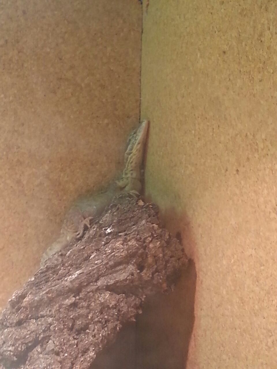 Estas navidades no podrían ser mejores, lo he metido en un territorio de unos 75cm de largo 45 cm de alto y 45 de ancho que tenia por casa por probar haber que tal y no podía haber hecho mejor, desde el día 23 ha comido todos los días blapticas pequeñas recién nacidas, 8 diarias (podría comer más pero mejor poco a poco) he observado que su comportamiento esta mejorando, se mueve por todo el terrario y escala por las paredes que estas todas forradas de corcho(del de carteleras) para aislar y para aumentar el tamaño útil del mismo.