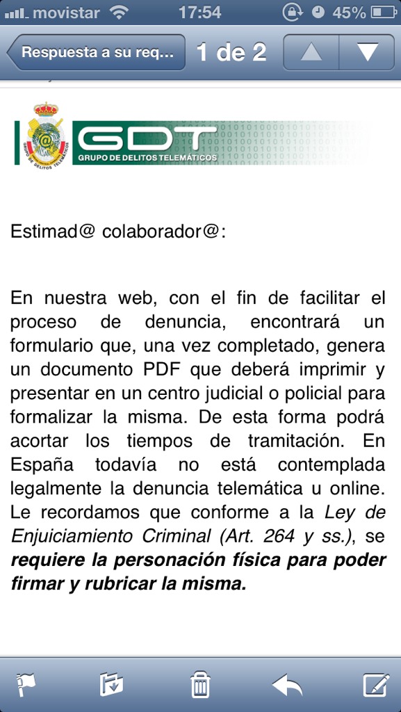 Para el que esté interesado en colaborar con la Guardia Civil, os adjunto un enlace para hacer informes sobre lo que sea o parezca un delito informático: