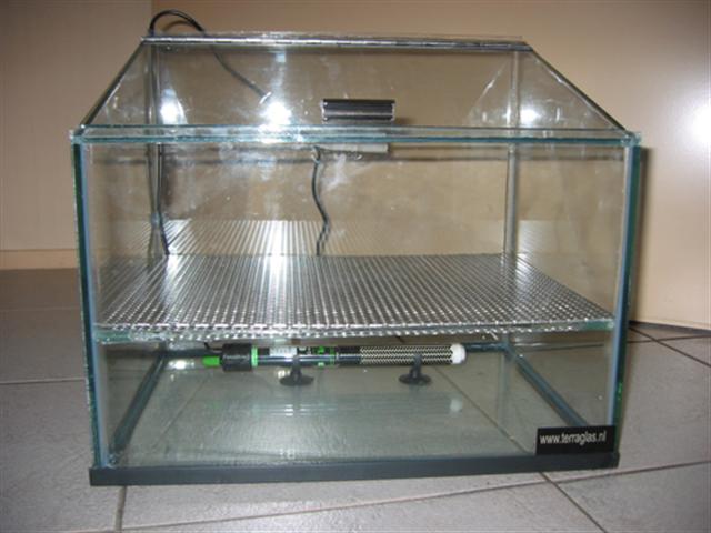 Pero es lo que he dicho antes no es seco. Es una incubadora de cristal con agua y un elemento de aquarium de calor. Maya y encima de la maya algodon y encima de algodon los huevos.