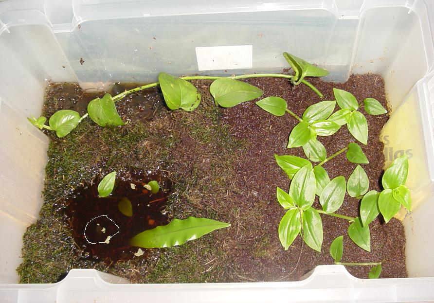 Este es el vivario tupper dd voy a ir pasando a los renacuajos,cuando veo ke estan proximos a salir los meto en esa charca,por ahora no ha salido ninguno,pero el mas avanzado lo he puesto en la charkita ya.me falta musgo,la mitad es turba al aire,puse esas plantas para dar un poco de verde.Saludos